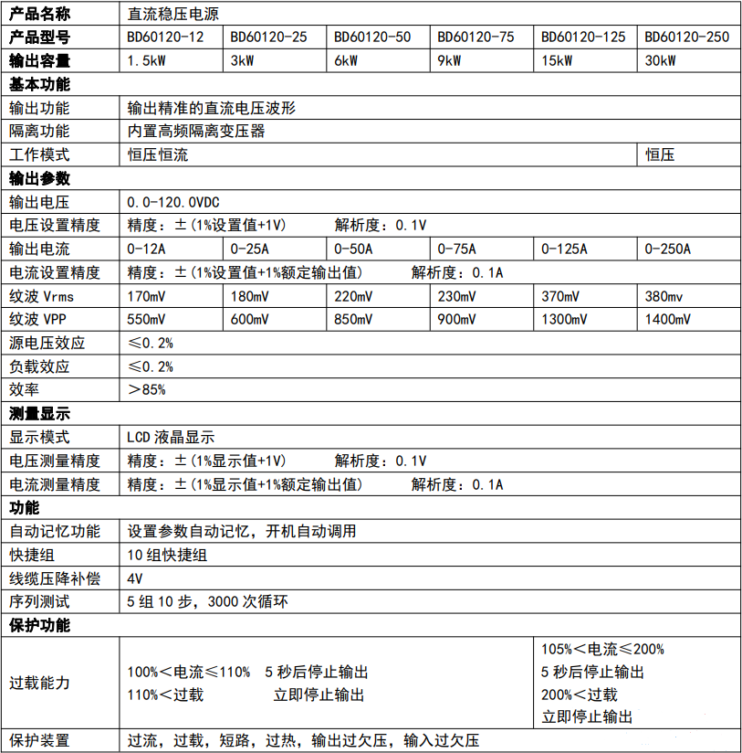 0-120V | BD60120-12 | 12 | 1.5kW | 0-330V | BD60330-5 | 5A | 1.5kW |