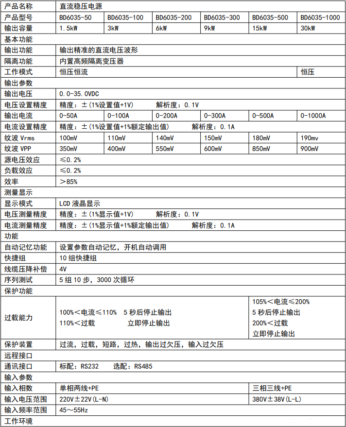 0-35V | BD6035-50 | 50A | 1.5kW | 0-60V | BD6060-25 | 25A | 1.5kW |