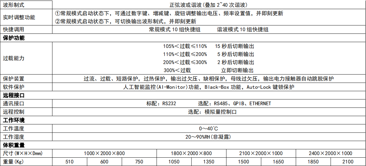型号 | 电压 | 功率 | 输出模式 | 编程 | 谐波叠加 | 尺寸(宽×高×深mm) |